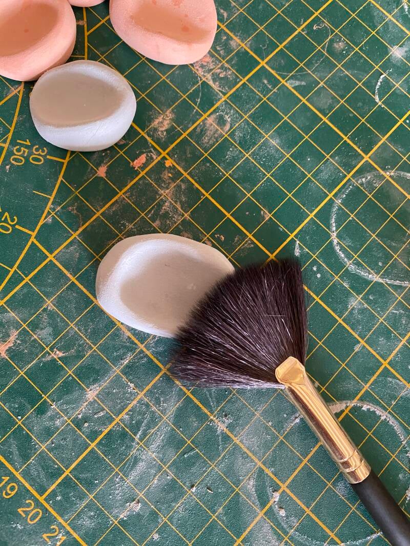Het nadeel van deze klei is dat je erg snel moet werken aan zulke kleine steentjes, omdat de klei anders niet fijn meer te gebruiken is.