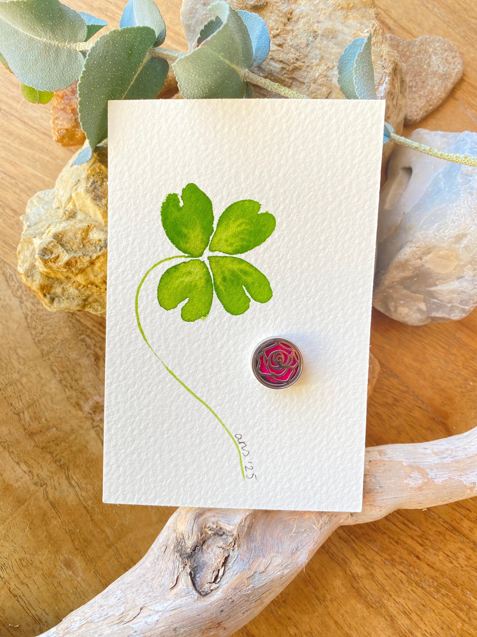 Het geurmagneetje is 15mm groot en wordt geleverd op een handgeschilderd kaartje.