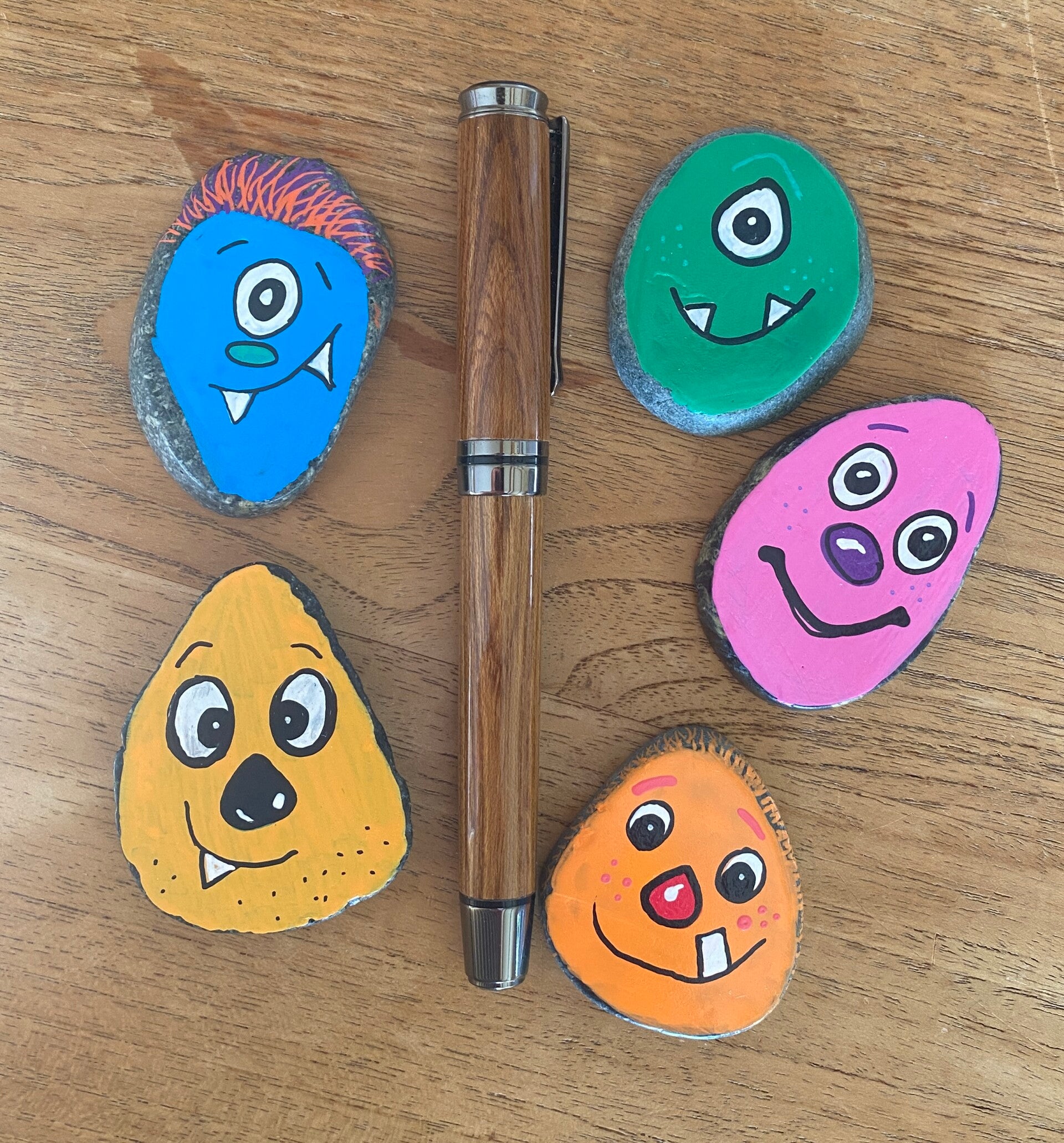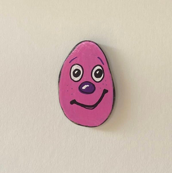 De schijven zijn beschilderd met acrylverf en afgewerkt met een glansvernis.