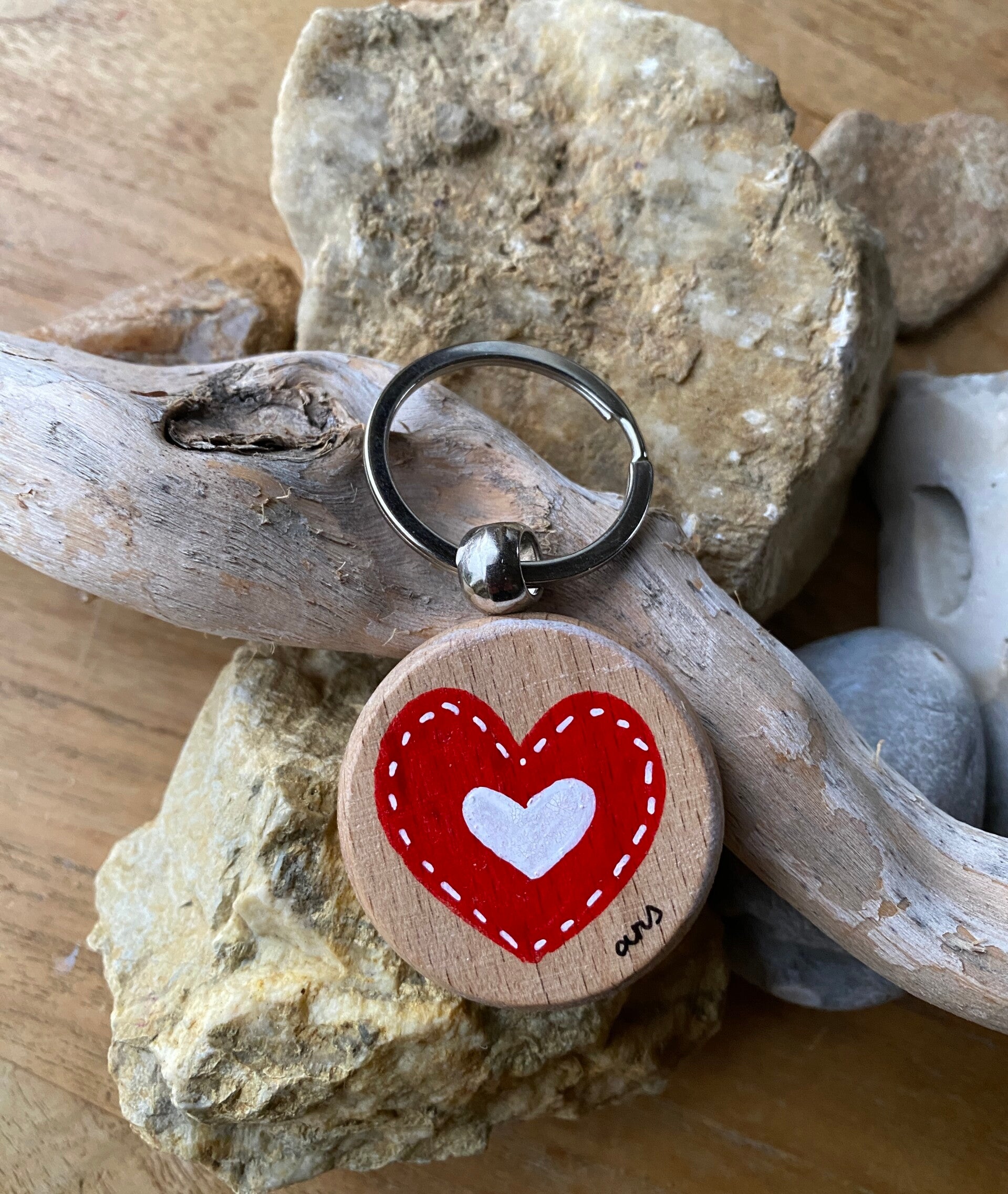 Deze houten sleutelhangers zijn origineel beschilderd.