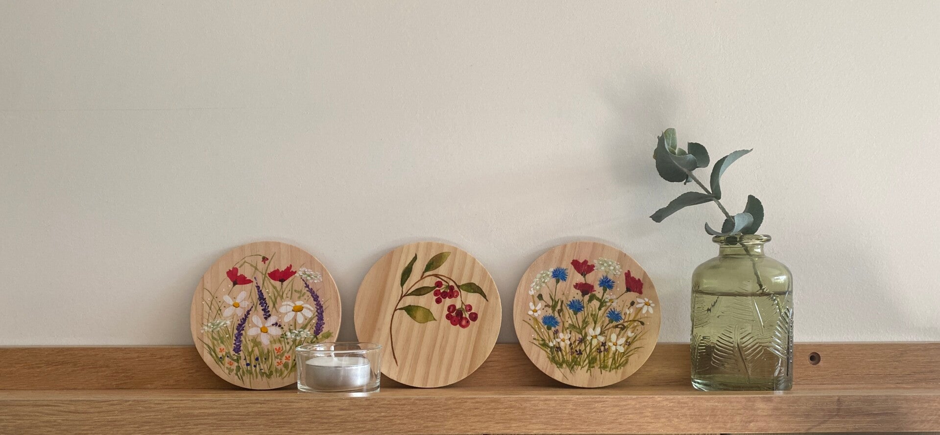 Met de hand beschilderd in zachte of juist kleurige aquareltinten.