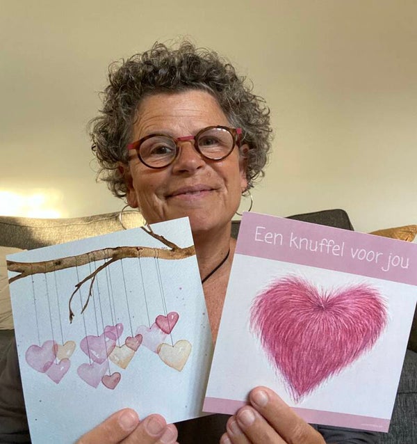 In de kaarten kan ook een klein houten hartje geplakt worden. Deze is los te bestellen.